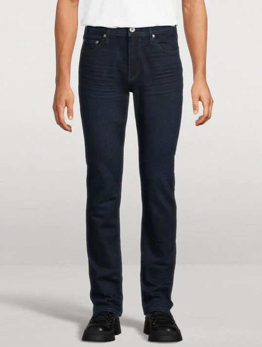 The Lennox Slim-Fit Jean in Thayer blends refined style with modern versatility. Its slim fit tapers from knee to ankle while sitting comfortably through the thigh, crafted from TRANSCEND VINTAGE stretch denim with a dark blue wash and subtle fading for a sleek, sophisticated look.