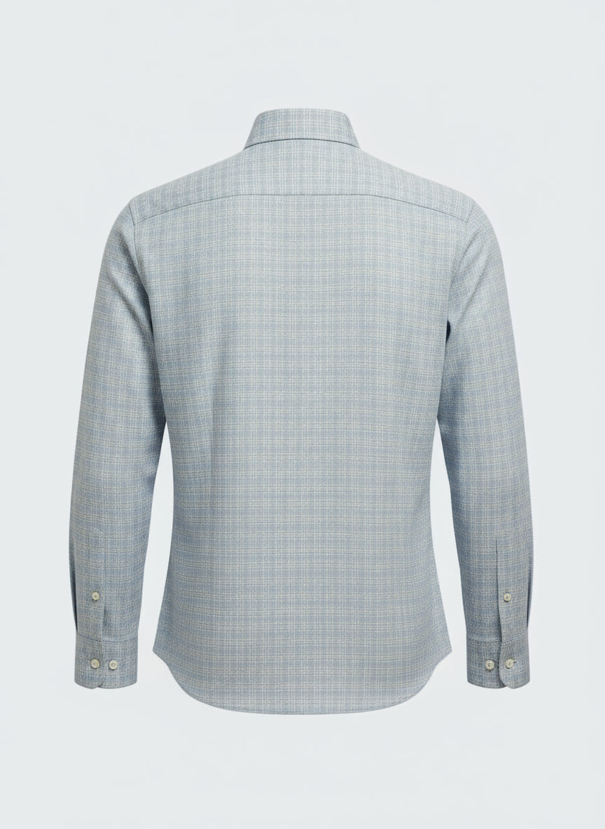 Discover refined comfort and sartorial elegance in this Emanuel Berg Luxe Flannel shirt in Light Pastel Blue. With its subtle Prince of Wales pattern and sumptuous flannel texture, this piece bridges the gap between smart tailoring and relaxed layering. Perfect under a blazer for a polished boardroom look—or worn alone with chinos for refined casual.
