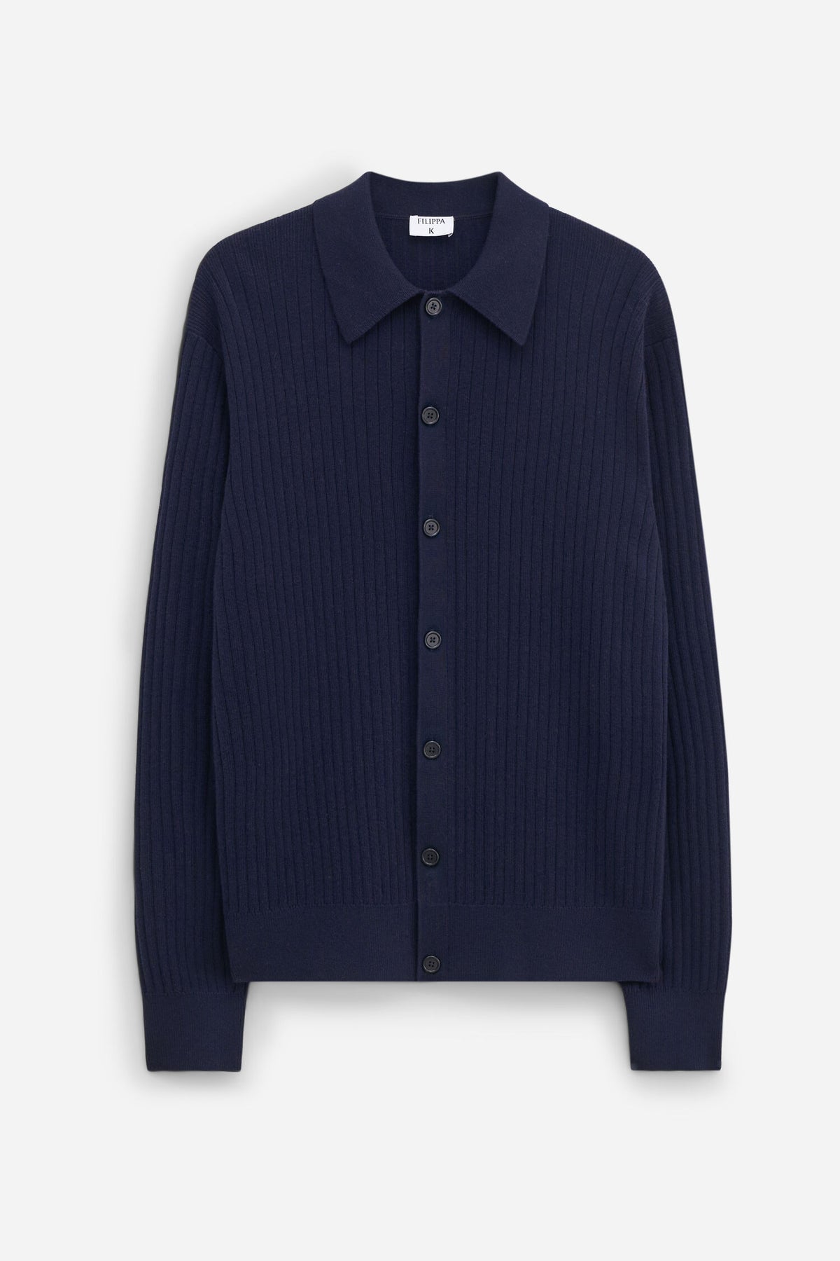 A knitted shirt made from a lightweight blend of organic cotton and merino wool, with a ribbed texture. Wear it with jeans or tailored trousers, layered under a coat during winter months.