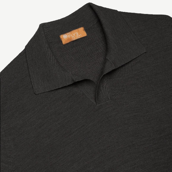 VIRGIN WOOL SKIPPER POLO - BLACK