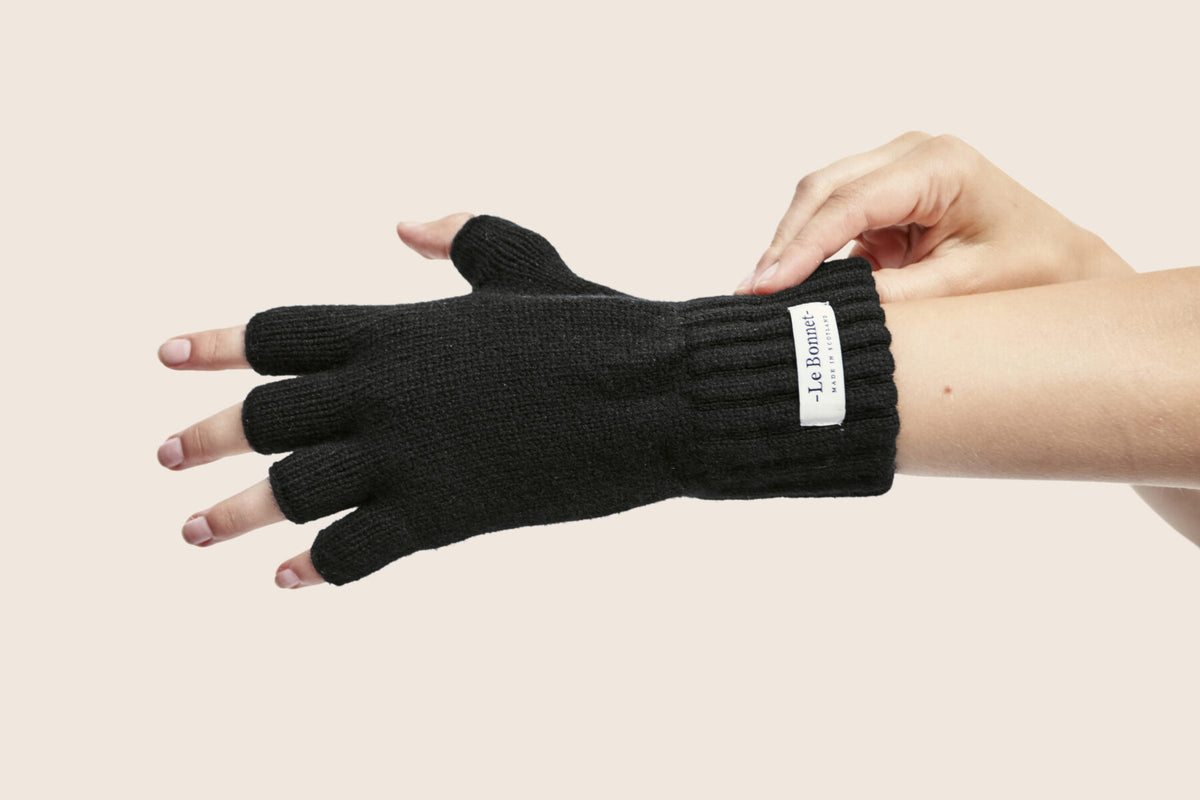 KNITTED FINGERLESS GLOVES - ONYX - 001 - ONYX / LARGE