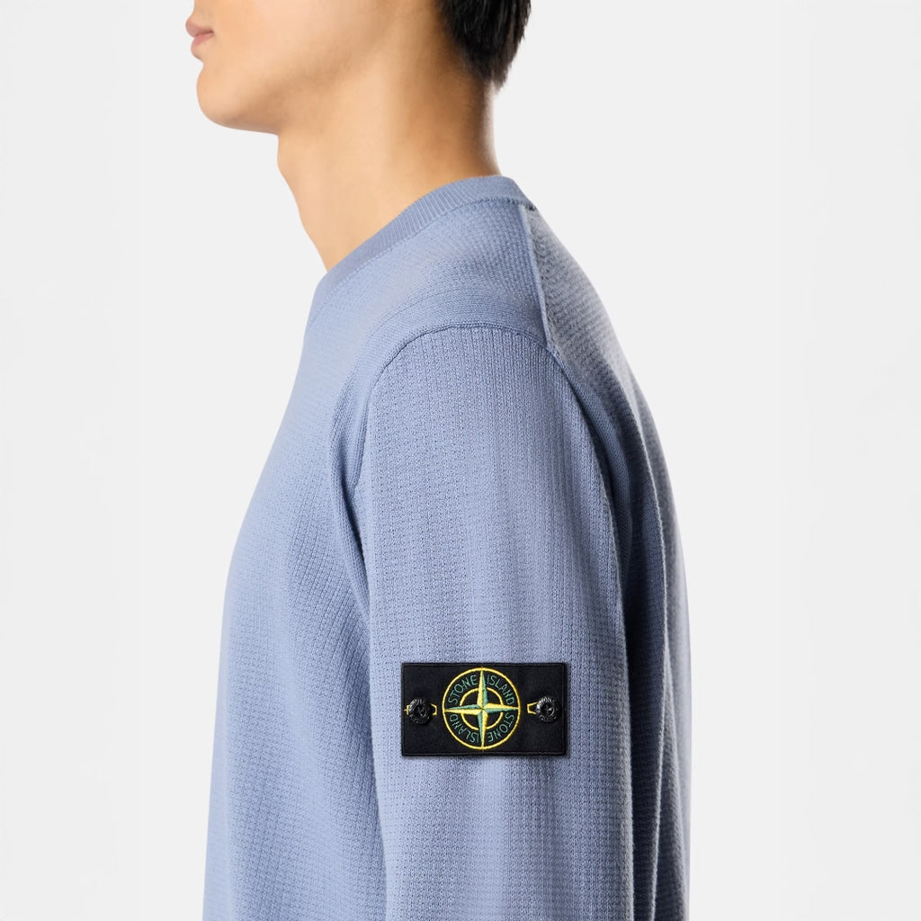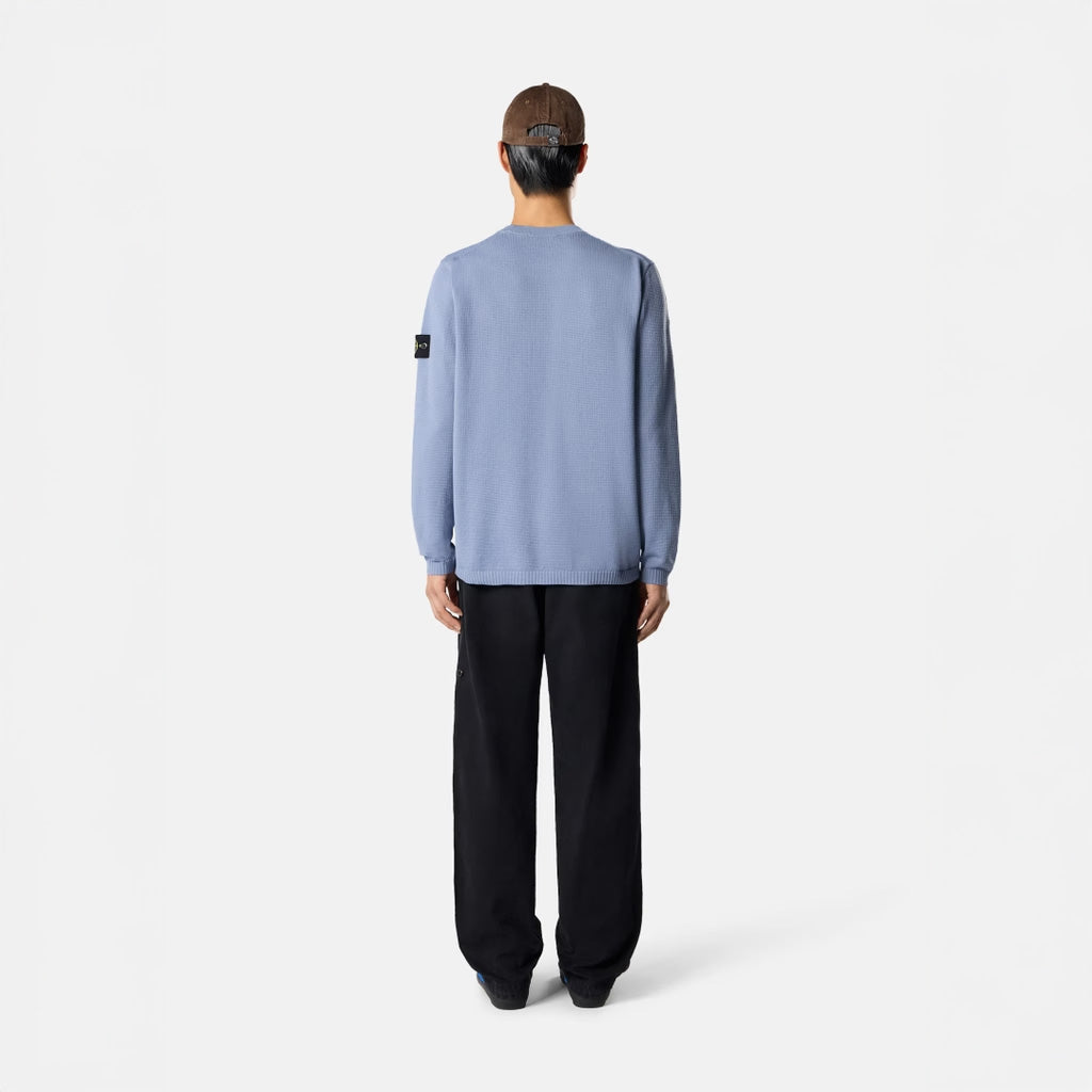 MICRO STITCH SOFT ORGANIC COTTON KNITTED CREWNECK - AVIO BLUE