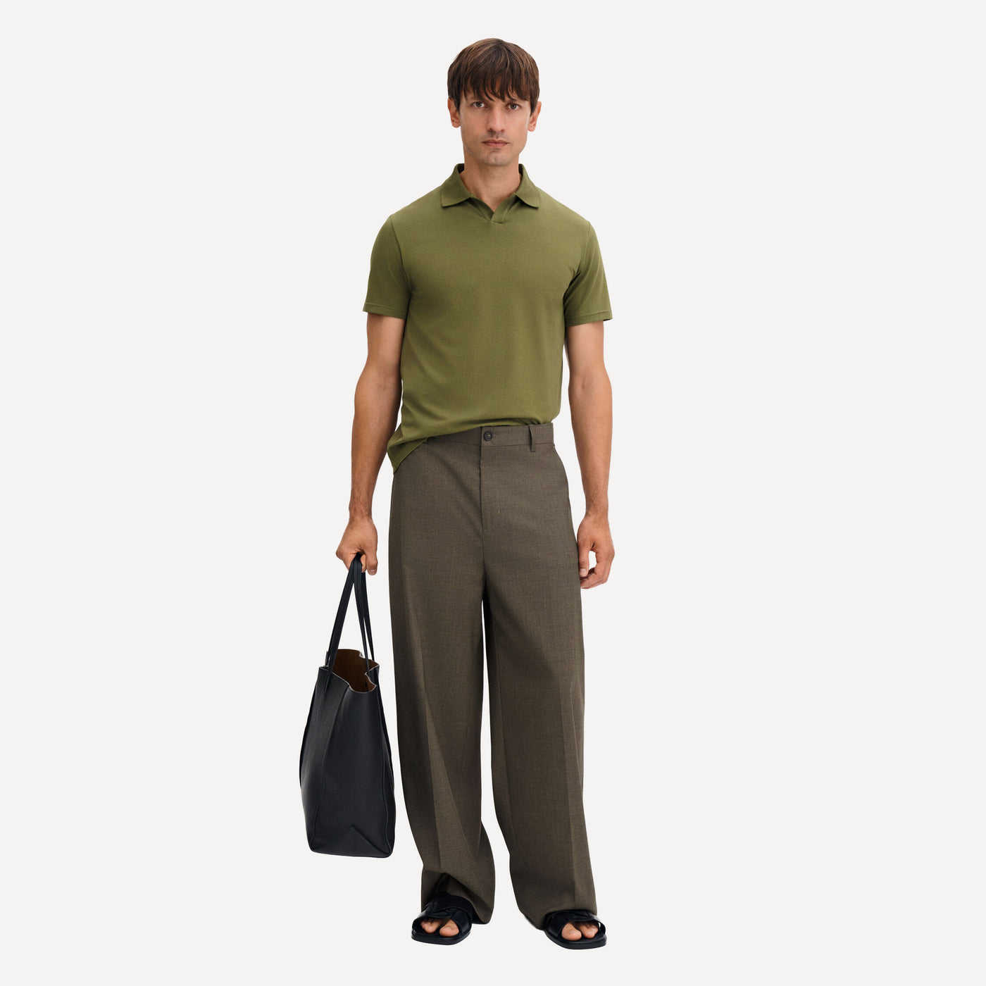 - Short sleeves - Flat knit collar - Clean placket